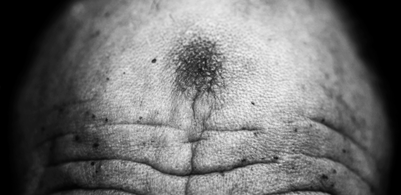 La photographie Rift In Time vient d’une série photographique dans laquelle l’artiste se focalise sur la « tabâa », terme qui désigne la marque laissée sur le front dû à la prosternation lors des rites de prière musulmans. Ce stigmate attesterait d’une assiduité religieuse et apparaitrait au fil du temps tel un tatouage qui s’encre dans la peau. Aussi il serait un symbole de représentation sociale et se réfère à un dialogue esthétique très codifié.